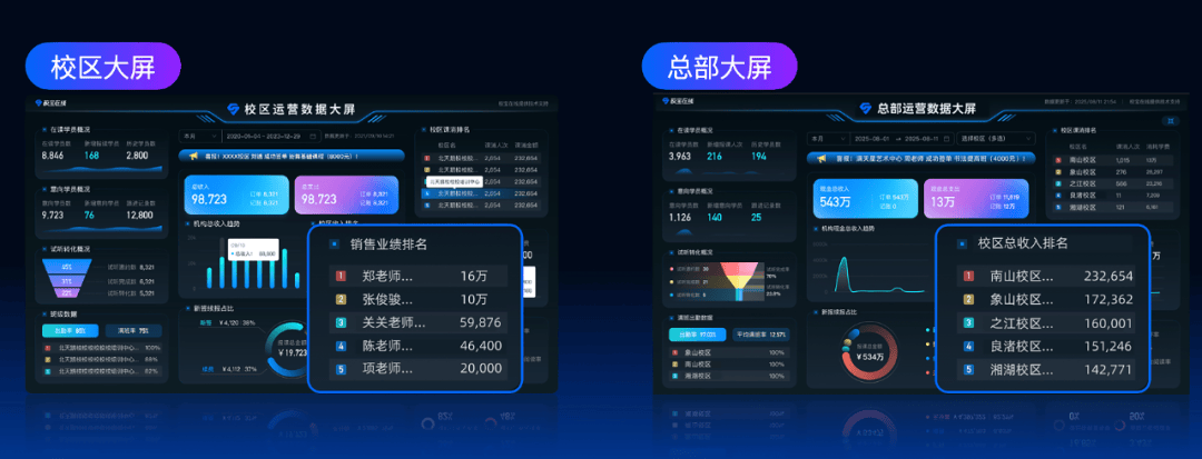 取此同时,校宝升级了校区取总部双数据大屏模式,校宝正在线做为行业领先的教育科技办事商。